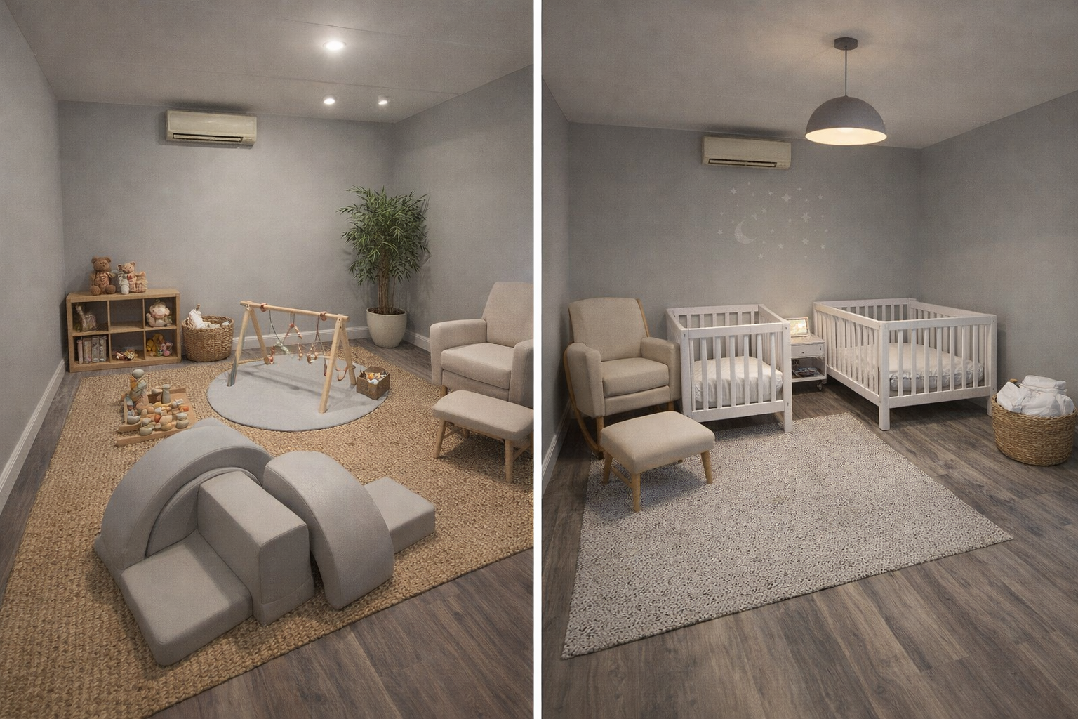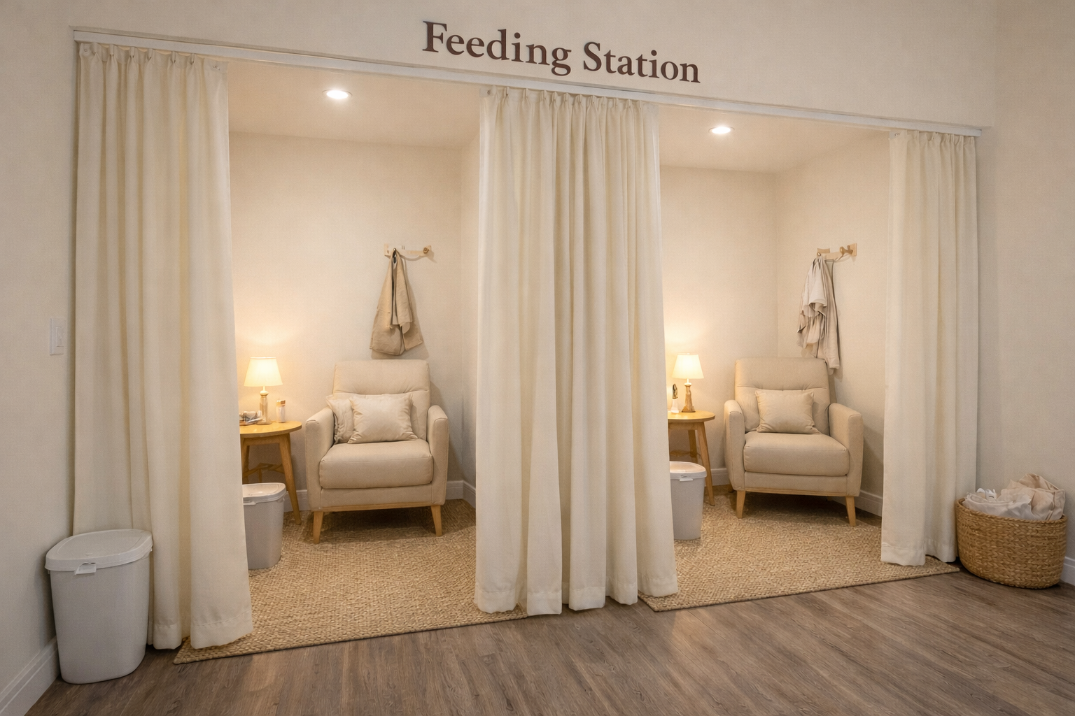 We envisioned something different, a place where a mother could send that email, host that meeting, or build that dream, while knowing her child is cared for just a few steps away. A space that feels elevated yet inviting, modern yet nurturing.